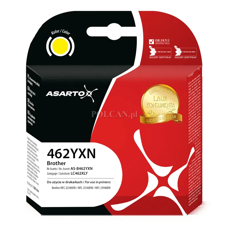 Tusz Asarto do Brother 462YXN | LC462XLY | 1500 str. | yellow. Pasuje do urządzeń: Brother MFC-J2340DW, Brother MFC-J3540DW, Brother MFC-J3940DW